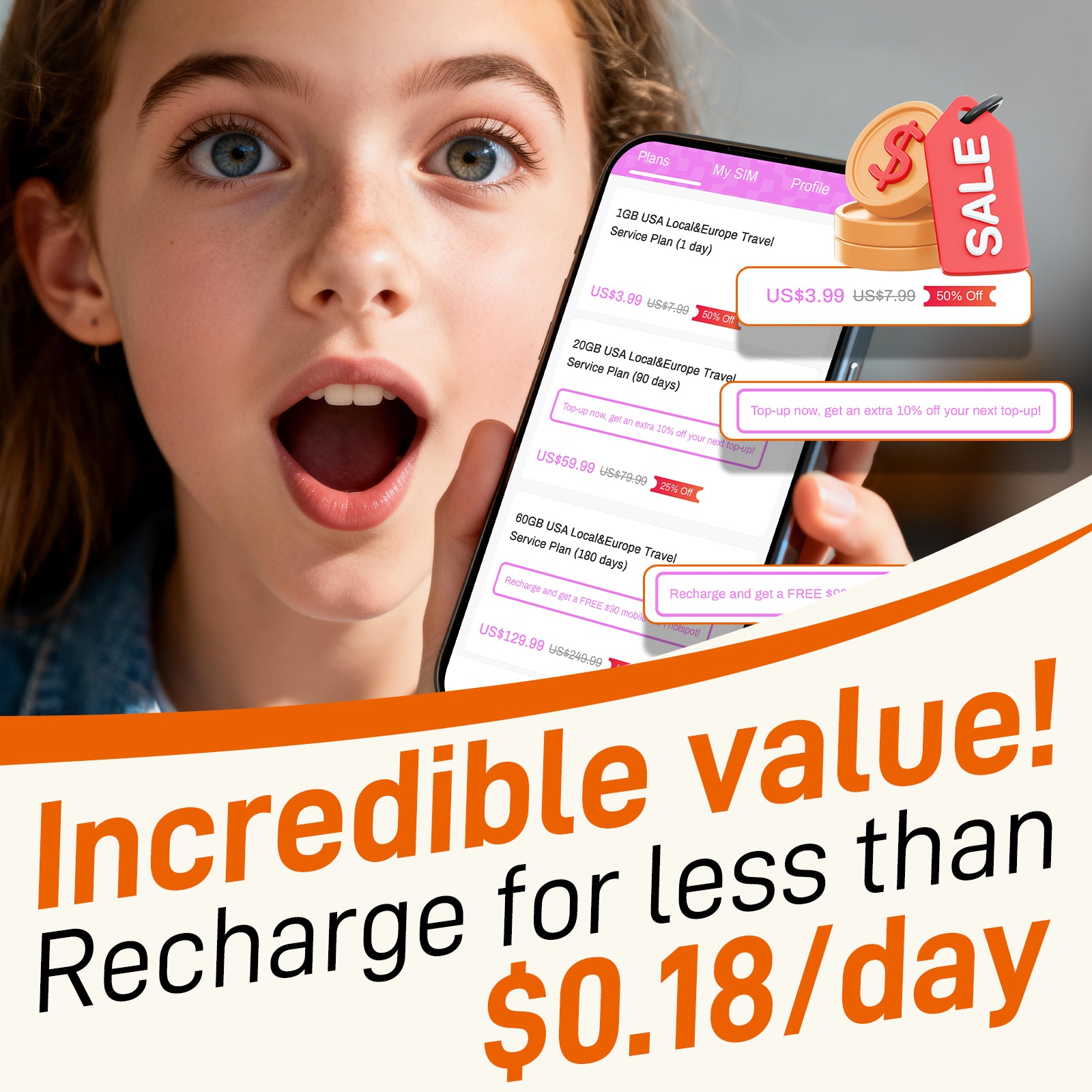 Once the eSIM is installed, you can monitor your data usage and choose to recharge with different data packages based on size and duration, all within the app for flexible usage.