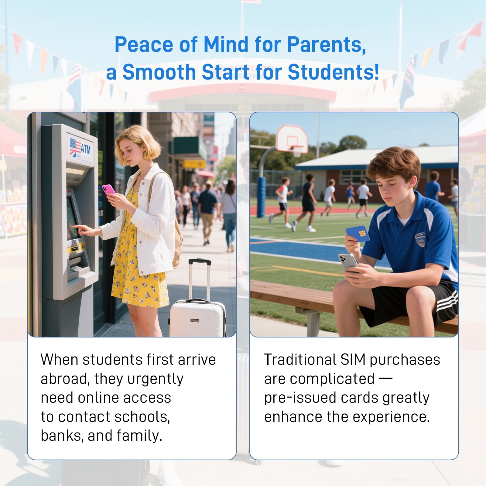International Student SIM USA - No Monthly Fee, Tri-Network (ATT/TMO/VZ), Instant Connectivity for Family Calls