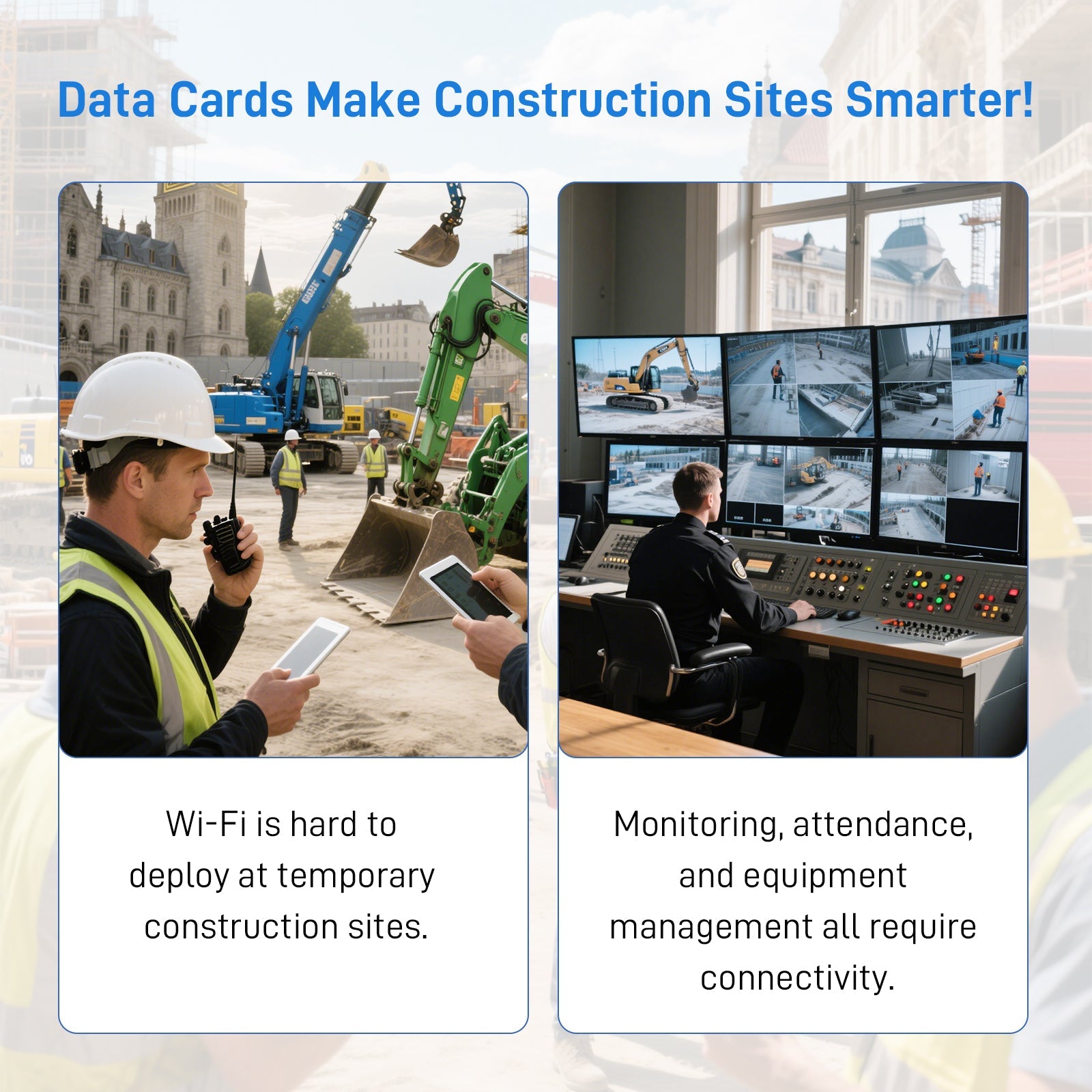 IoT Data SIM for Construction - No Monthly Fee, Tri-Network Coverage (ATT/T-Mobile/Verizon), Connect Management Tools/Time Tracking/Site Cameras