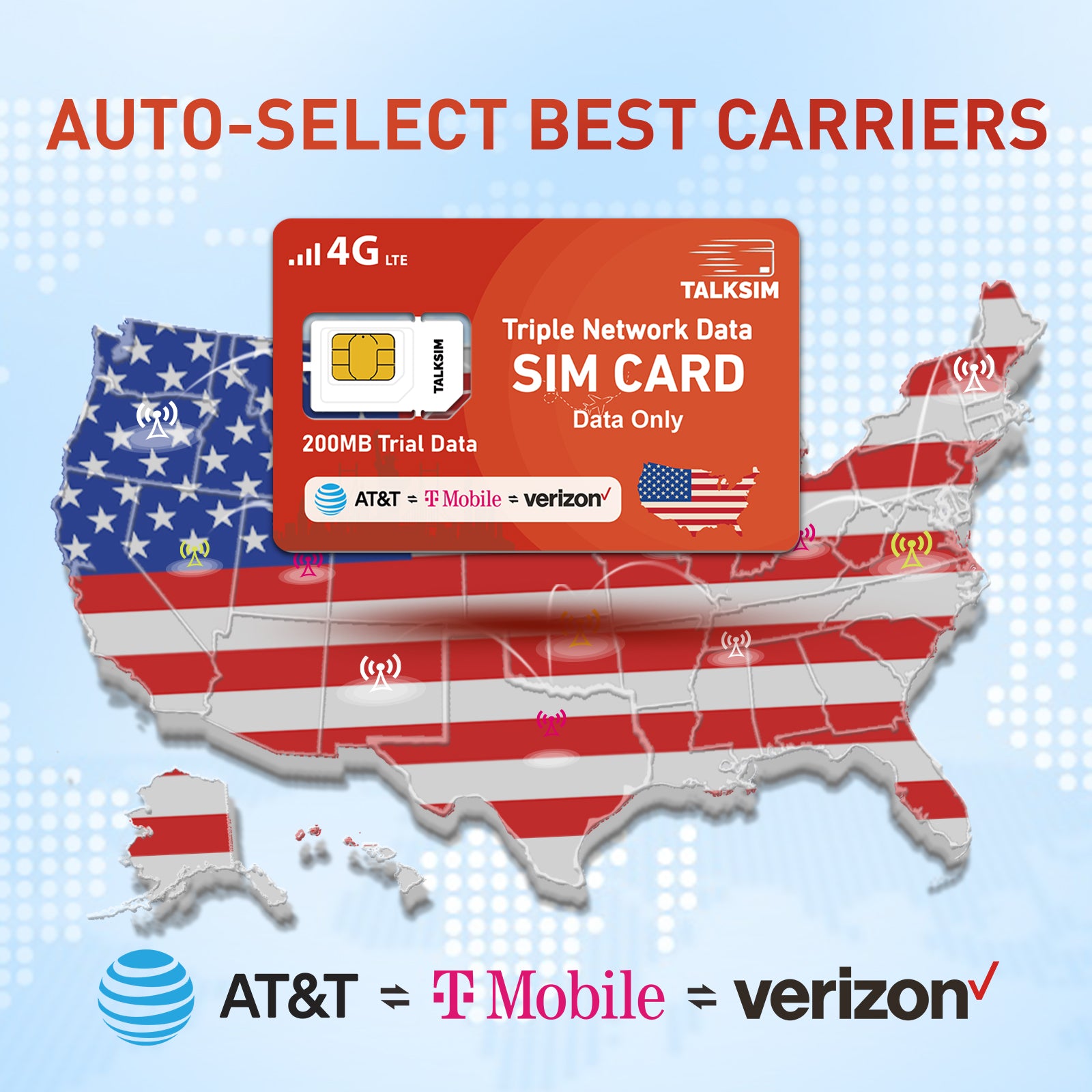 - Support AT&T ,T-Mobile and Verizon Network:TALKSIM SIM card will auto select a proper carrier to get a stable signal no matter where you are.