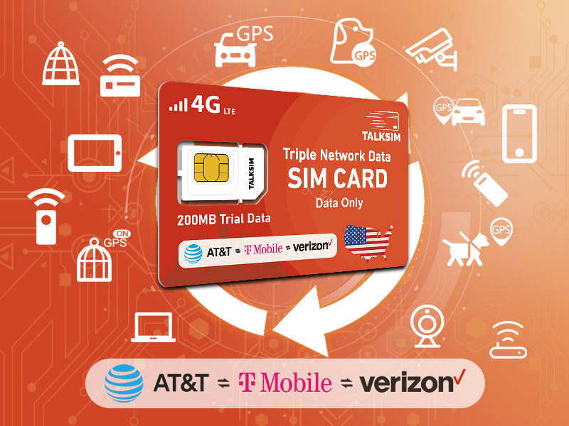 TalkSIM Prepaid 4G LTE Cellular SIM Card-Support AT&T, T-Mobile Dual Network - USA Data Only SIM Card|FREE 200MB