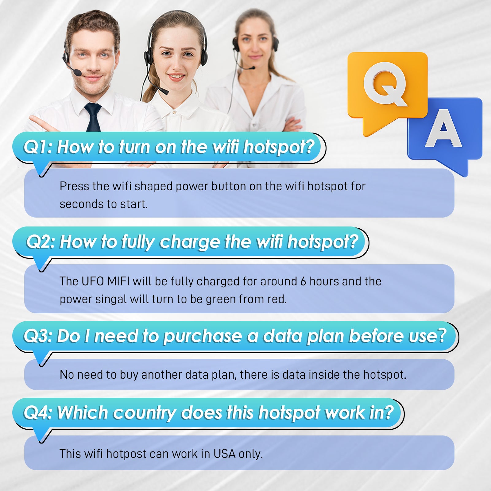 【Support Top Cellular Operators】No need to purchase extra SIM card, we offers free data only SIM card. 4G LTE UFO pocket WiFi with SIM card is compatible with US top cellular providers AT&T , T-Mobile and Verizon,it will automatically match the best signal in your local area, wide coverage of the network, no contract, no voice/text, no contract, no activation fee.