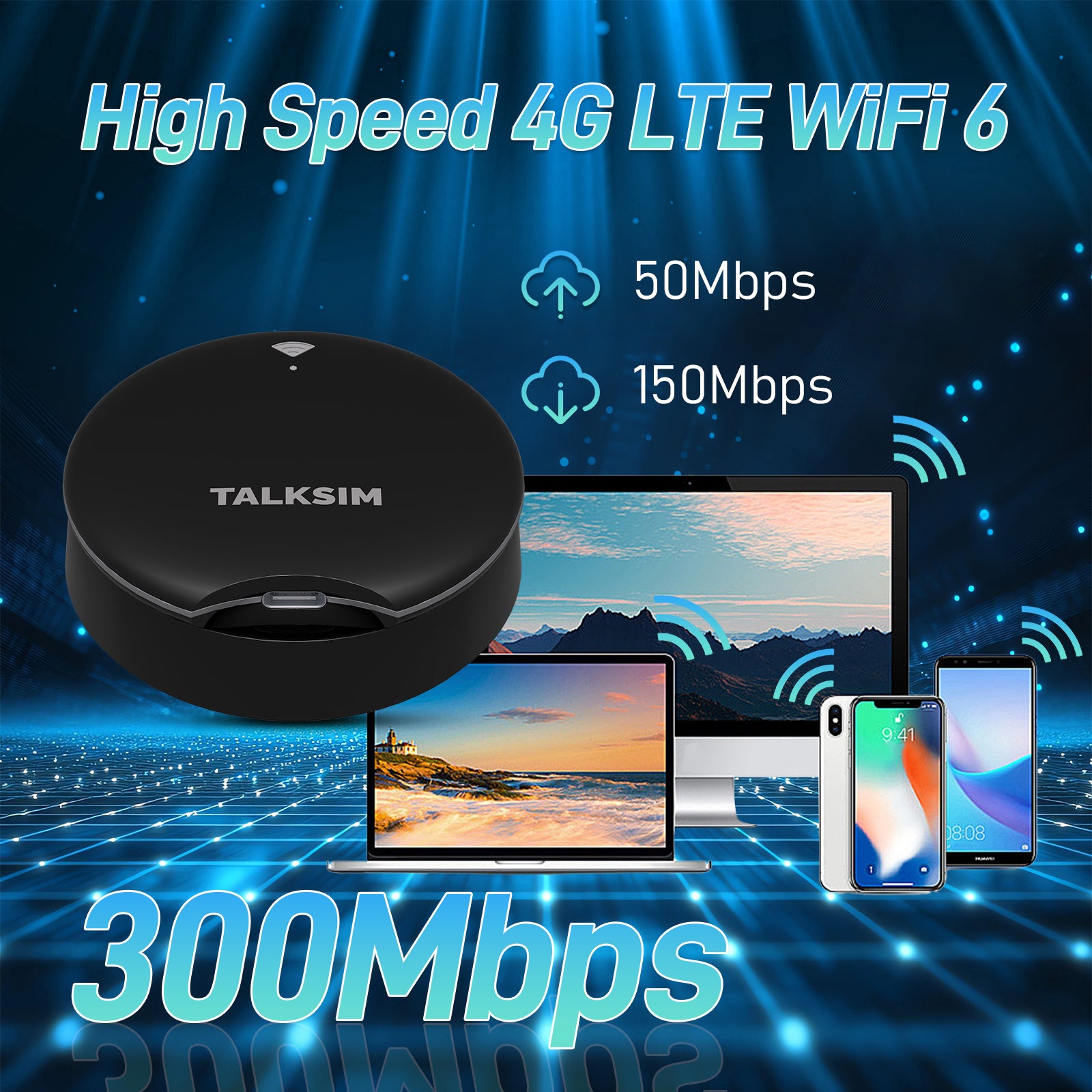 【High Speed 4G LTE UFO WiFi Mobile Hotspot】This mobile hotspot adopts 4G LTE Cat4 connectivity, support WiFi up to 300Mbps, Max 150Mbps download speed & 50Mbps upload speed and get large WiFi coverage.The 4G WIFI hotspot with SIM card slot becomes higher efficient network and various and fast Internet access.