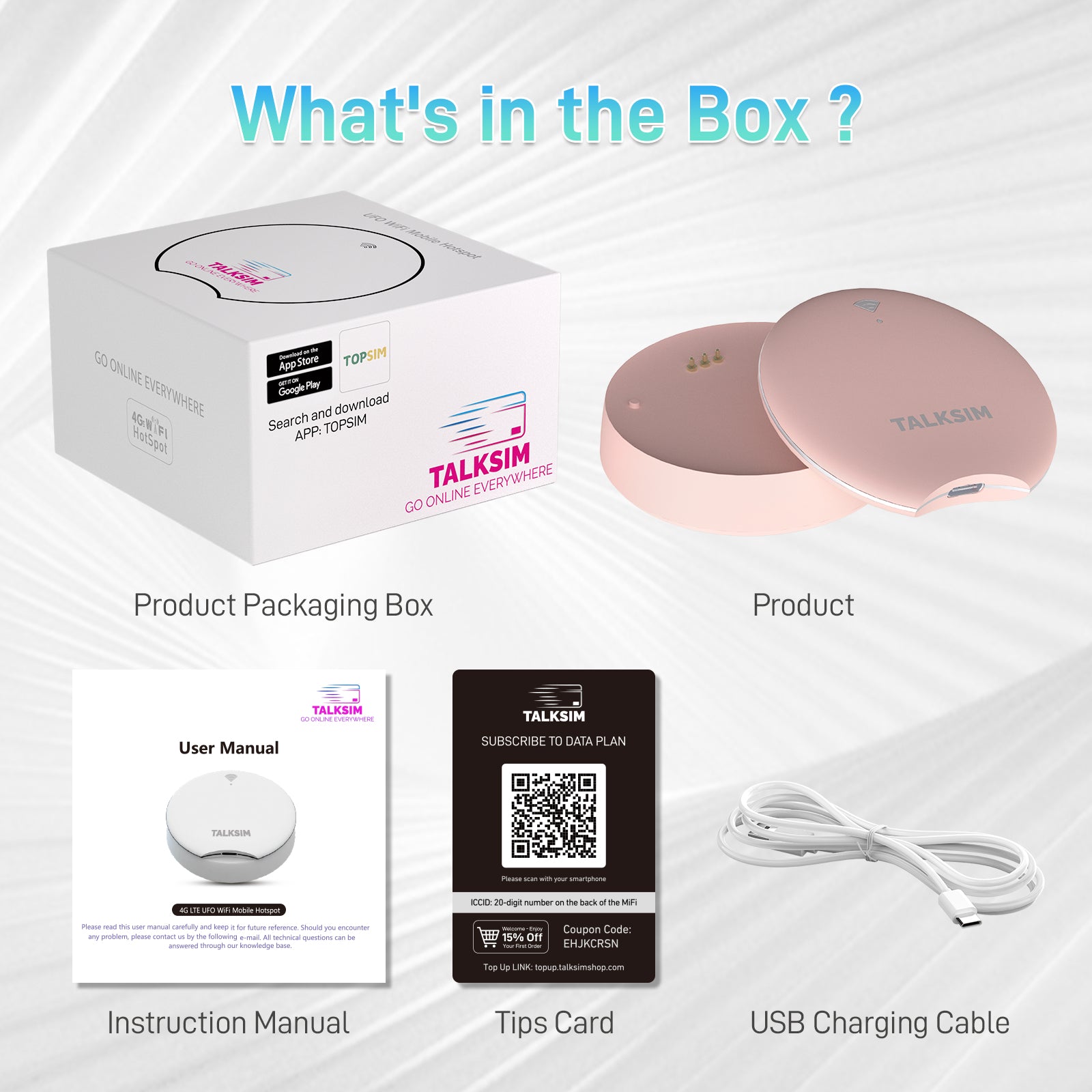 【Large Battery Life】The UFO WiFi Mobile Hotspot no contract comes with a built-in 2000mAh battery, which can be used over 6 hours non-stop using, stay online all day. Whether you’re at home, working or travelling, the internet on the go hotspot device allows stable and fast WiFi to follow your footsteps around the world. Keep all your gadgets charged on-the-go. Only 0.2 lb, put into your pocket, low burden on the road.